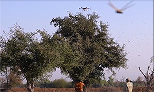 2月16日,在巴基斯坦德拉伊斯梅尔汗(dera IsmailKhan)地区,当地民众启用赛为智能赛鹰SY141HR多旋翼植保无人机,用于当地蝗虫灾害的防治工作。