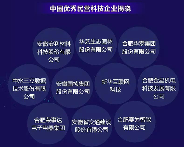 现场对安徽省“中国优秀民营科技企业、优秀民营企业家”进行了颁奖,合肥赛为智能作为安徽省民营经济的重要代表,凭借近年来在工业级无人机、机器人等人工智能产业的创新成就和贡献,被大会授予“中国优秀民营科技企业(安徽)“荣誉称号。